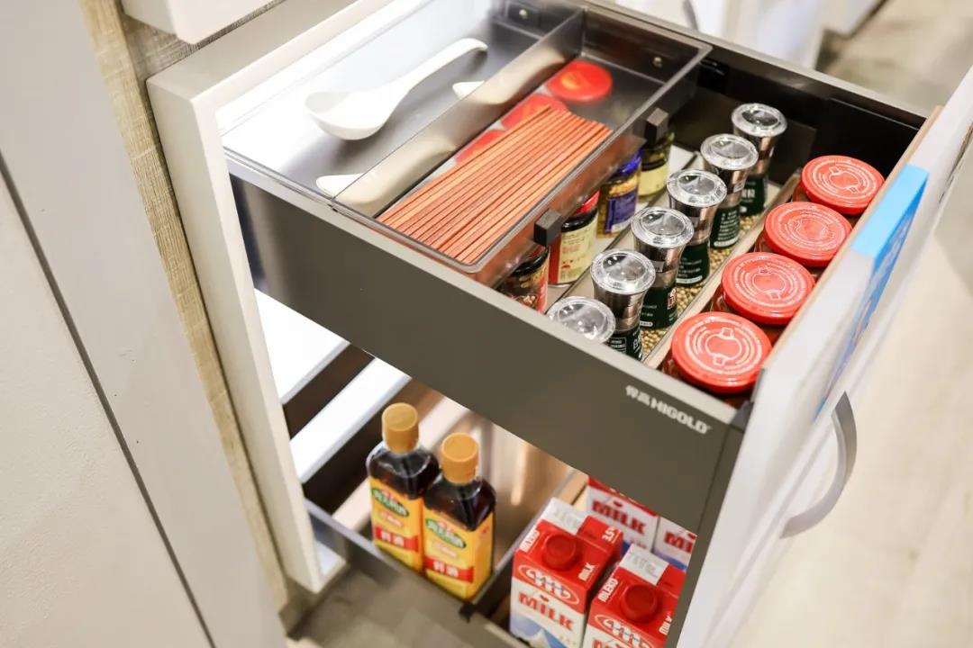 从产品赋能方面,作为17年来以原创设计著称的功能五金行业领军品牌,悍高坚持以原创驱动创新,全面提升产品力。悍高全方位展示了从厨房收纳五金、衣柜收纳五金,门窗五金、基础五金等一系列全屋定制家居五金,实现一站式解决家居五金方案。