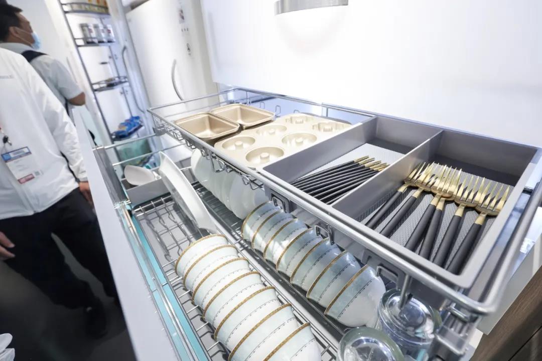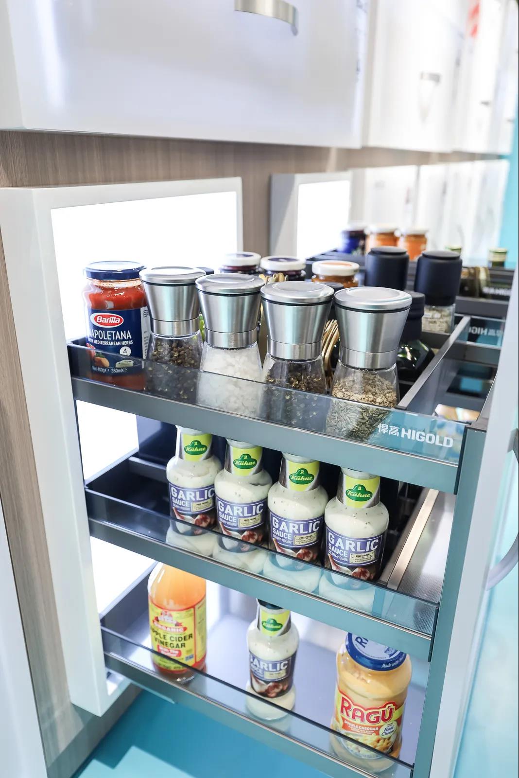 出击上海展,悍高集团可谓是充分准备,带来众多新品系列 午夜视频高清,其中厨房收纳系列我们带来全新原创产品——星链系列,极致收纳延续马丁系列爆款基因,全新升级抽中抽,比传统橱柜多一层收纳。